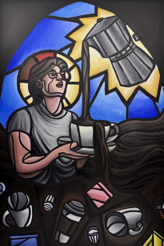 Acrylic paint is my go-to medium, with graphite following closely behind.